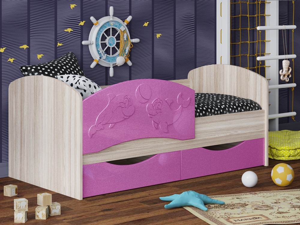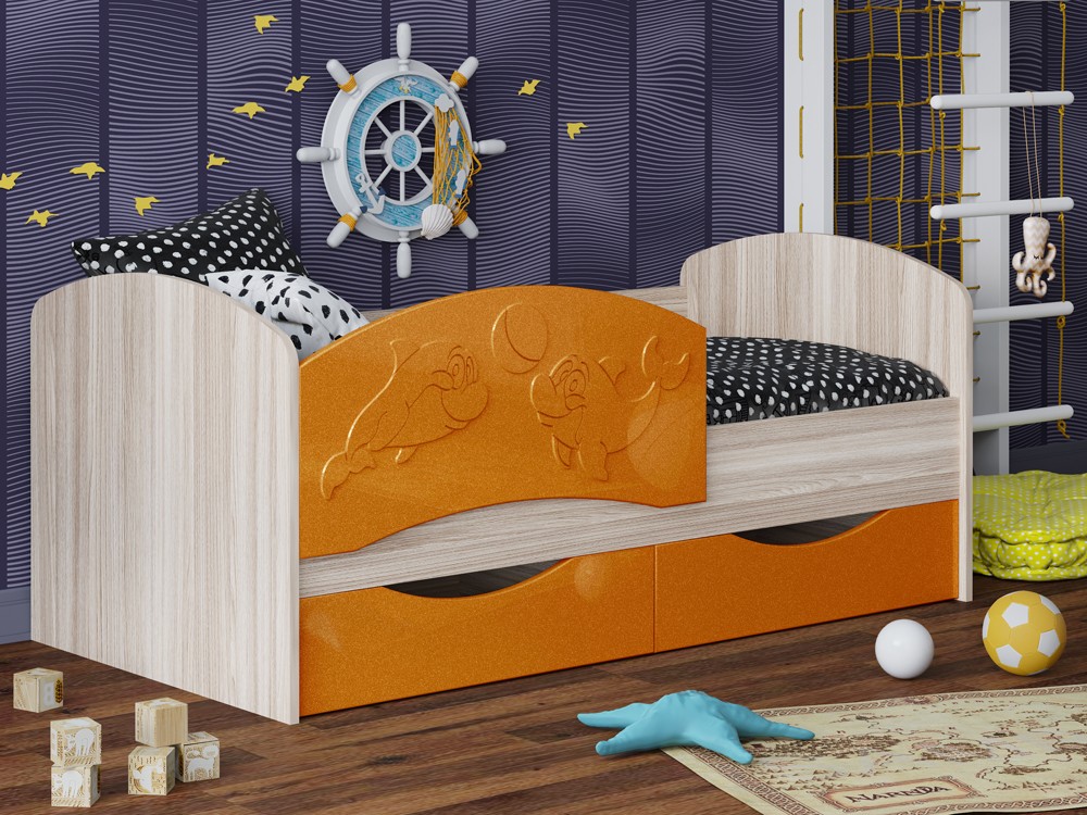 Детская Кровать Дельфин-3 МДФ с фасадом 3D/Разные Цвета