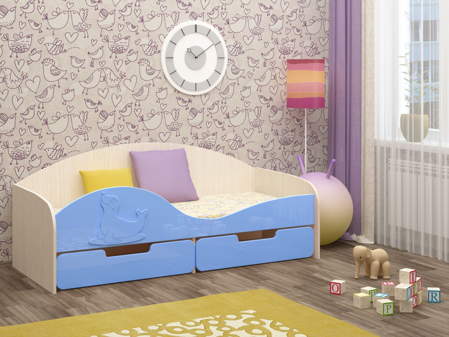 Кровать "Юнга-8" МДФ - превосходный выбор для детской комнаты вашего ребенка. Кровать оснащена бортиком с накладкой в виде милого тюленя, который защищает вашего ребенка от возможного падения во сне. Снизу кроватки находятся два выдвижных ящика, в которых удобно хранить детские игрушки, одежду или белье. Эта оригинальная кроватка поразит Вас своим милым дизайном.
